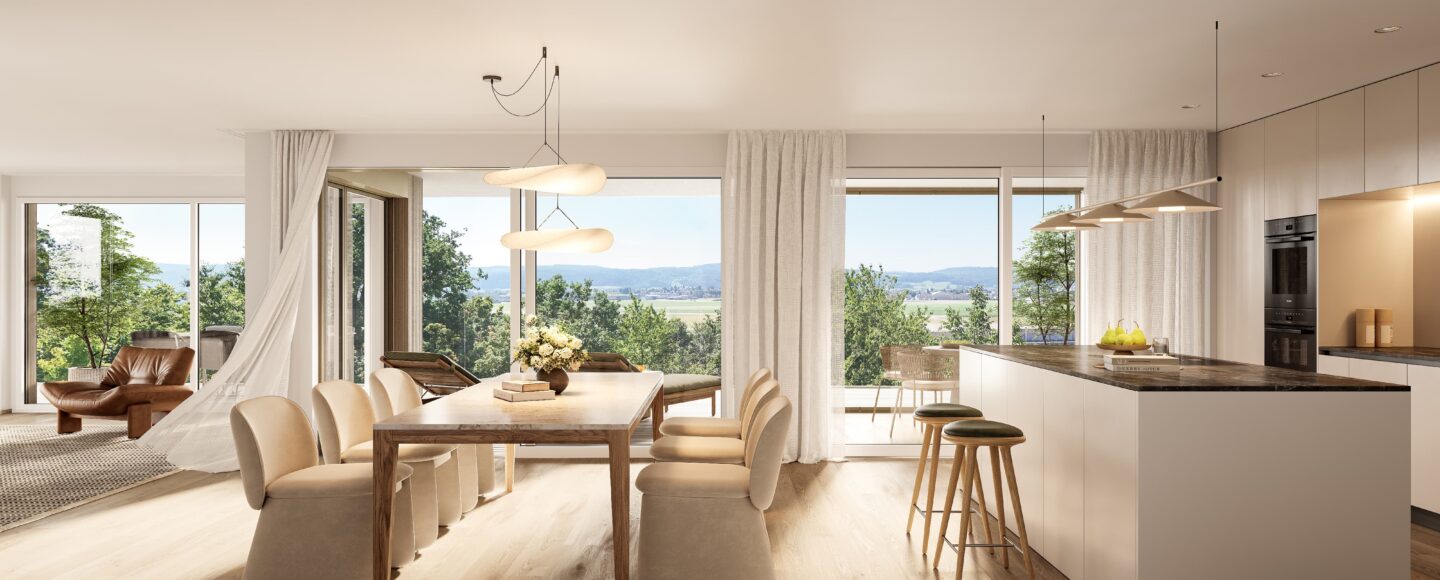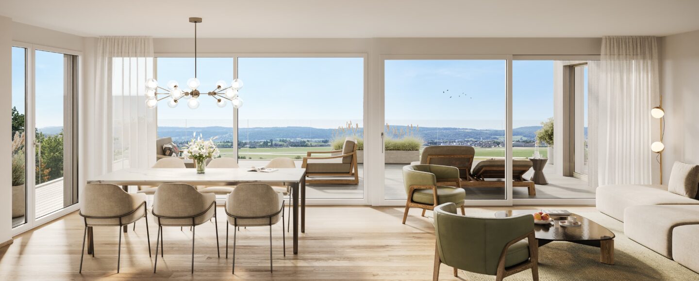 Ob eine einladende Gartenwohnung mit privatem Grünraum, eine grosszügige Etagenwohnung mit Weitblick oder eine Attikawohnung mit 180-Grad – Panoramaaussicht – im DOERNLER wohnen Sie modern, komfortabel und an einer Lage, die Sie jeden Tag aufs Neue schätzen werden.